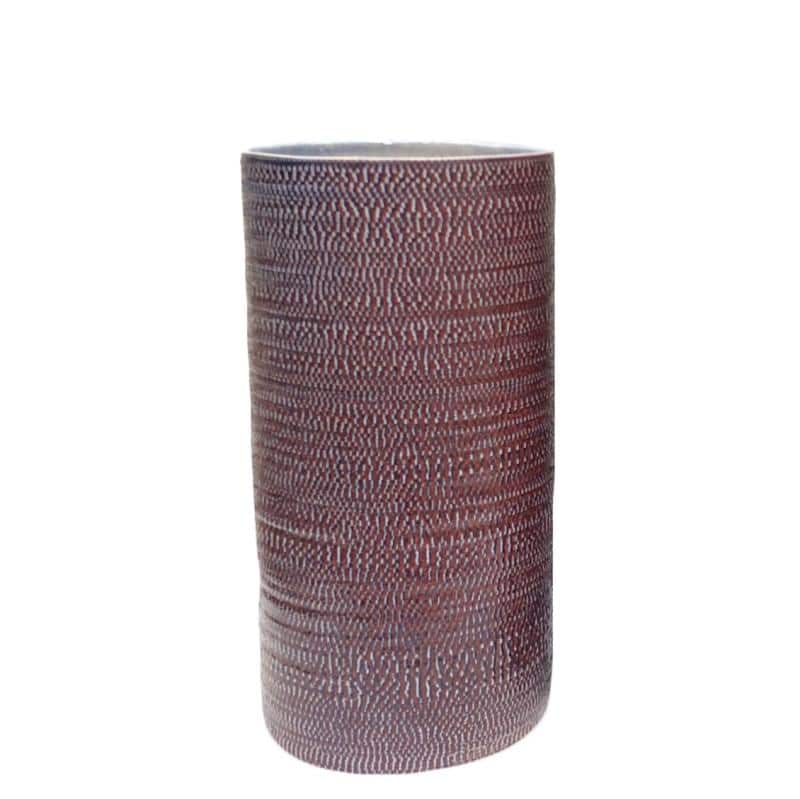 Truly Truly ontwikkelde een textuur die doet denken aan een bijzondere, ruwe eucalyptusschors. Dit inspireerde hen bij de creatie van deze porceleinen vaas die een abstracte interpretatie is van een boomstam. Tweekleurig glazuur geeft de vaas een andere uitstraling, zowel van dichtbij als van veraf. De kleurmenging doet denken aan de complexiteit van kleuren die in textiel worden bereikt, terwijl de kleine verschillen die ontstaan tijdens het keramische proces elke vaas uniek maken in textuur, kleur en licht variërende afmetingen.