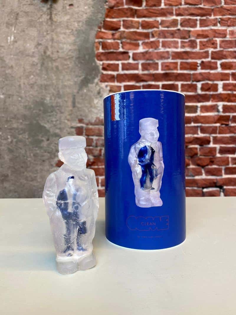Deze zeep verwijst naar de sterke handelsgeest van Nederland. Door het gebruik verandert een Hollandse boer in een zakenman van Delfts Blauw porselein.