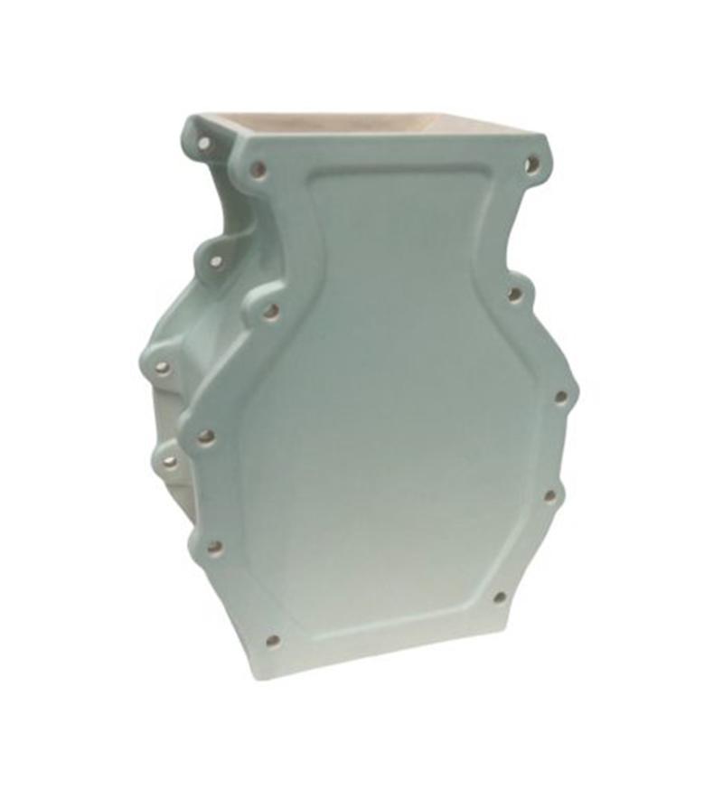 Motorblokken en behuizingen worden vaak afgedicht door middel van een pakking. Door deze beeldtaal te combineren met het kwetsbare materiaal en een herkenbare, iconische vaasvorm ontstaat deze vaas.