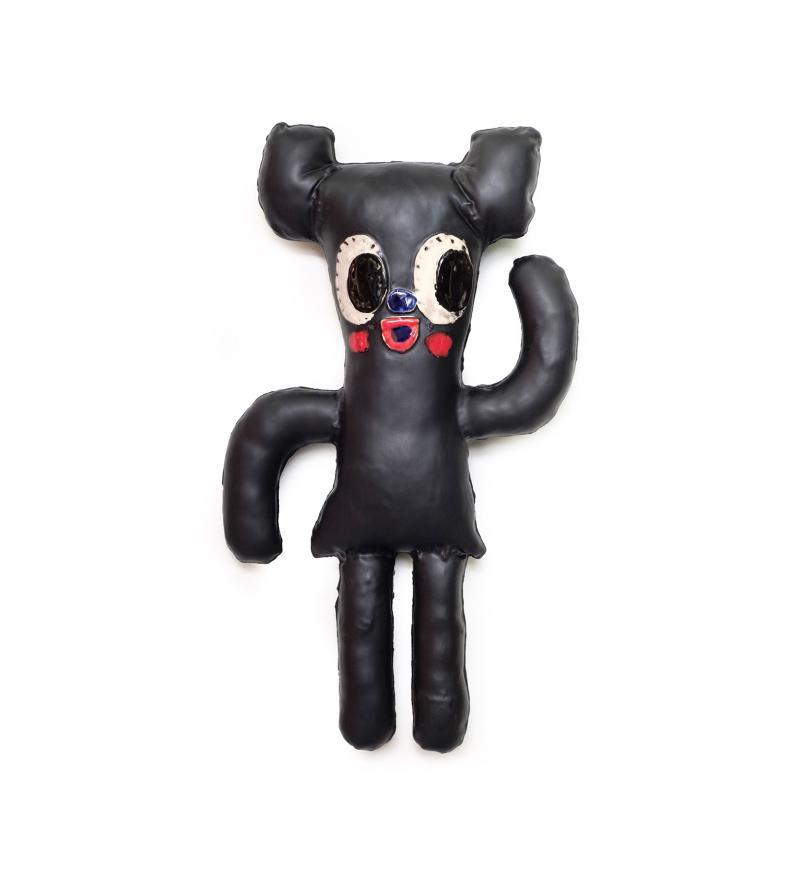 Bas Kosters heeft tijdens zijn werkperiode bij het EKWC onder andere een paar grote beren gemaakt waarin hij puur plezier wilde verwerken en dat er mee uitbeelden. De teddybeer staat voor hem symbool voor connectie en troost, een object waar we onze hoop en dromen op kunnen projecteren. Deze kleine beren zijn liefdevol geproduceerd bij Cor Unum in roze, blauw en zwart. Gat aan de achterkant, je kunt hem aan de muur hangen.