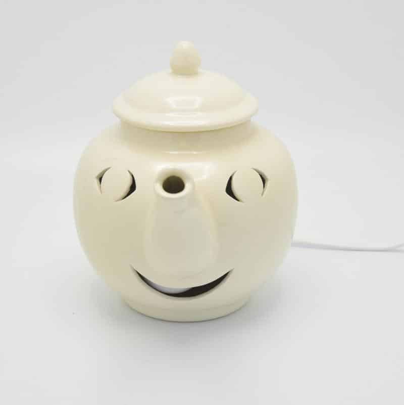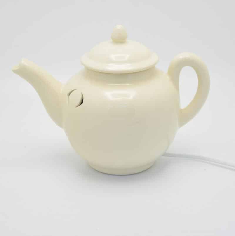 Deze originele theepot is niet wat het lijkt. U kunt er geen thee uit drinken maar wel genieten van een prachtig licht dat door de theepot wordt verspreid. Keramiste Corien Ridderikhof heeft deze theepot gemaakt van gegoten porselein. De theepot is voorzien van LED-verlichting en bekabeling.