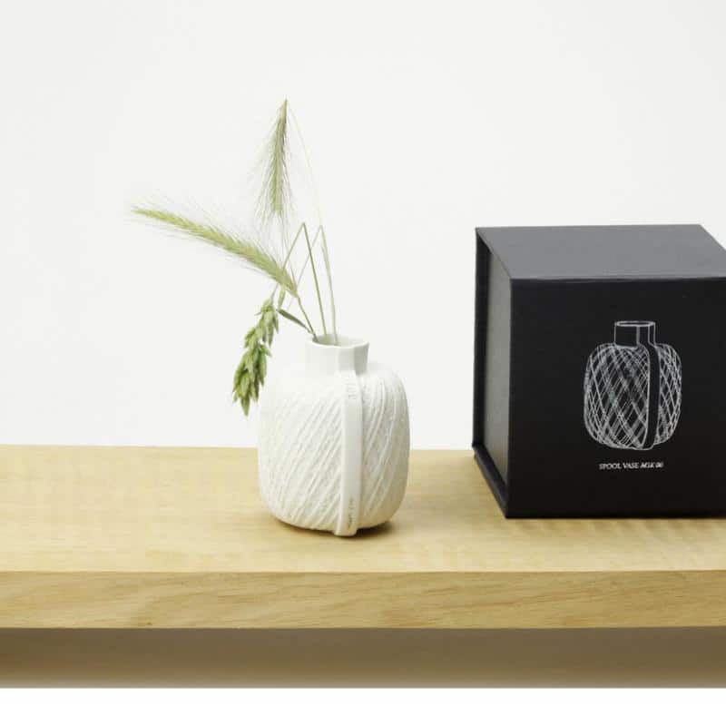 Mara's interesse en achtergrond in textieldesign resulteerde in deze serie 'spoel'vaasjes.