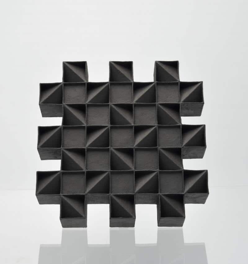 Meeuwsen is beeldend kunstenaar en werkte in 1993 bij het EKWC. Gedurende enkele tientallen jaren werkte Hans voornamelijk als pottenbakker en docent keramiek, totdat problemen met zijn gezondheid hem dwongen zijn praktijk te heroverwegen. Hij liet de draaischijf achter zich en keerde terug naar het opbouwen met de hand, waarbij hij porselein gebruikte om dunner en lichter te kunnen werken. In plaats van een bepaalde vorm te herhalen, laat Hans de verschillende elementen zich ontwikkelen volgens logische transformaties. Sommige patronen zijn meteen duidelijk, andere laten langer op zich wachten om ontcijferd te worden. Er schuilt vaak iets tegendraads in de werken, alsof ze willen ontsnappen aan de strakke orde die Hans hun oplegt. Je ziet dat ze met de hand zijn opgebouwd: alles is net niet perfect, wat de reliëfs toegankelijker maakt en ze een levendige uitstraling geeft.