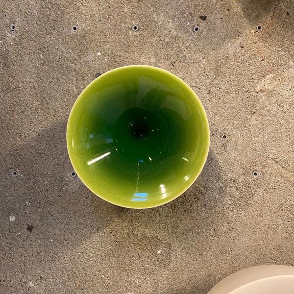 De Puntkom heeft een verfijnd optisch effect door de naar een punt toe lopende binnenzijde. Dit effect wordt verder benadrukt door het subtiele kleurverloop in het glazuur. Het glanzende oppervlak vormt een mooi contrast met de matte, naturel witte buitenkant van de kom. Door het variërende kleurverloop in de glazuurlaag krijgt iedere kom een uniek karakter. De schalen zijn dubbelwandig gegoten en hebben een opening aan de onderzijde, waardoor ze aan de wand kunnen worden opgehangen.