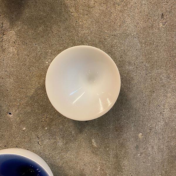 De Puntkom heeft een verfijnd optisch effect door de naar een punt toe lopende binnenzijde. Dit effect wordt verder benadrukt door het subtiele kleurverloop in het glazuur. Het glanzende oppervlak vormt een mooi contrast met de matte, naturel witte buitenkant van de kom. Door het variërende kleurverloop in de glazuurlaag krijgt iedere kom een uniek karakter. De schalen zijn dubbelwandig gegoten en hebben een opening aan de onderzijde, waardoor ze aan de wand kunnen worden opgehangen.