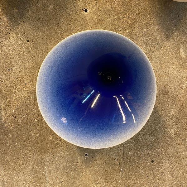 De Puntkom heeft een verfijnd optisch effect door de naar een punt toe lopende binnenzijde. Dit effect wordt verder benadrukt door het subtiele kleurverloop in het glazuur. Het glanzende oppervlak vormt een mooi contrast met de matte, naturel witte buitenkant van de kom. Door het variërende kleurverloop in de glazuurlaag krijgt iedere kom een uniek karakter. De schalen zijn dubbelwandig gegoten en hebben een opening aan de onderzijde, waardoor ze aan de wand kunnen worden opgehangen.