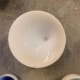 De Puntkom heeft een verfijnd optisch effect door de naar een punt toe lopende binnenzijde. Dit effect wordt verder benadrukt door het subtiele kleurverloop in het glazuur. Het glanzende oppervlak vormt een mooi contrast met de matte, naturel witte buitenkant van de kom. Door het variërende kleurverloop in de glazuurlaag krijgt iedere kom een uniek karakter. De schalen zijn dubbelwandig gegoten en hebben een opening aan de onderzijde, waardoor ze aan de wand kunnen worden opgehangen.