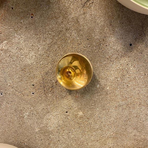 De Puntkom heeft een verfijnd optisch effect door de naar een punt toe lopende binnenzijde. Het glanzende oppervlak vormt een mooi contrast met de matte, naturel witte buitenkant van de kom. Door het variërende kleurverloop in de glazuurlaag krijgt iedere kom een uniek karakter. De schalen zijn dubbelwandig gegoten en hebben een opening aan de onderzijde, waardoor ze aan de wand kunnen worden opgehangen.