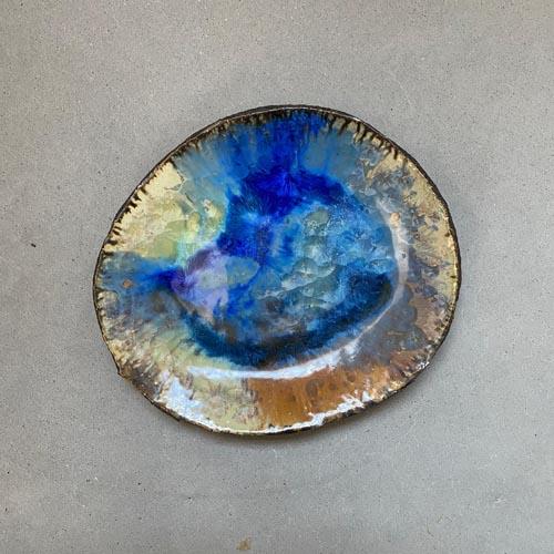Froukje is adviseur en doet research bij EKWC in de glazuurwerkplaats. Deze schalen van steengoed zijn geglazuurd met kristalglazuren.