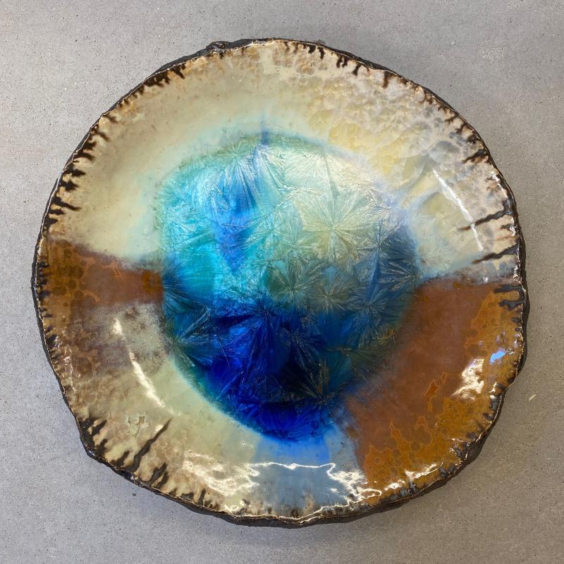 Froukje is adviseur en doet research bij EKWC in de glazuurwerkplaats. Deze schalen van steengoed zijn geglazuurd met kristalglazuren.