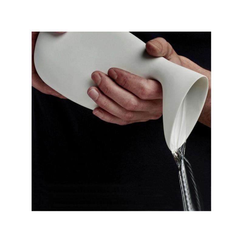 Aldo Bakker geeft een ode aan het ‘schenkritueel’. Deze horizontale waterkaraf vult je glas vrijwel bewegingloos. Met deze water karaf laat hij ook de perfectie in vorm zien die te halen is met porselein. Handgemaakt door Studio Zand.
