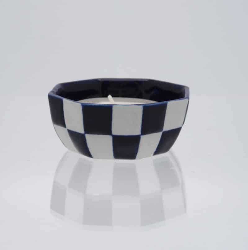 Deze porseleinen lichtjes zijn geschikt voor grote waxinelichtjes of kleine stompkaarsjes en geven sfeer aan uw huiskamer. De kenmerkende techniek waarmee keramiste Corien Ridderikhoff deze lichtjes decoreert is de batiktechniek. Hierbij worden afwisselend vlakken met bijenwas en glazuur gevuld. Zo ontstaat er een fraai contrast. Doordat het glazuur dik is aangebracht hebben de waxinelichtjes een mooi reliëf-effect. De inspiratie voor veel van het werk van Ridderikhof komt van Aziatisch keramiek, architectuur en textielpatronen.